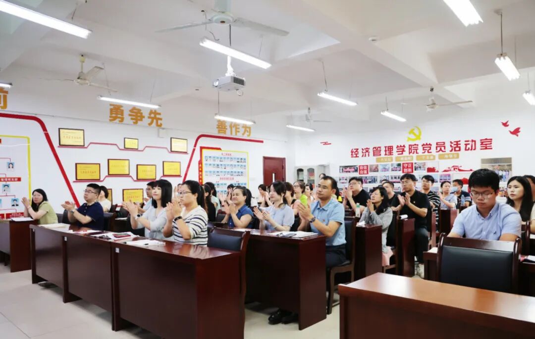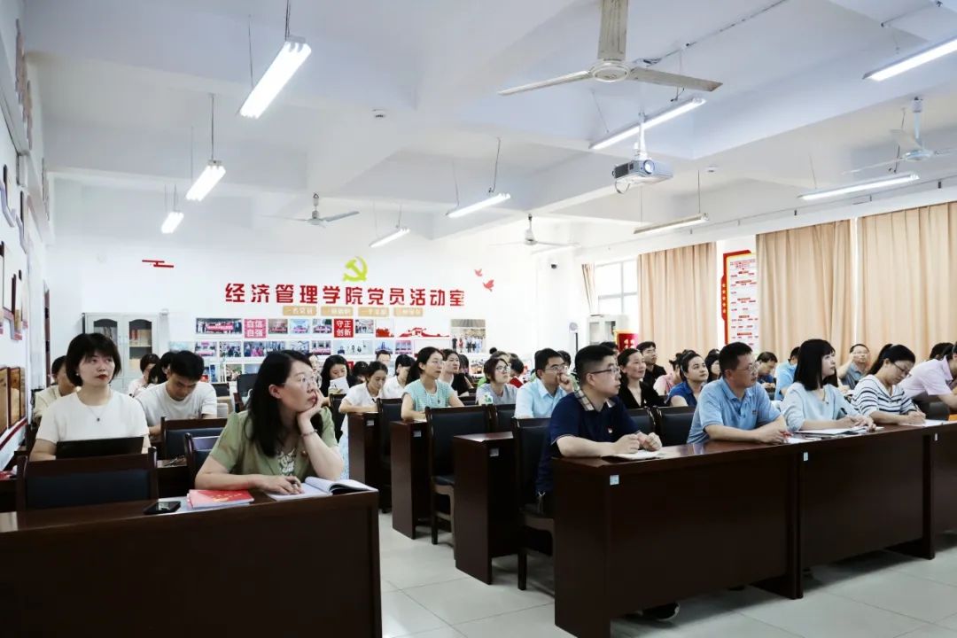 根据学校深入贯彻中央八项规定学习教育总体安排,7月3日下午,学校党委副书记、校长廖国琼以《加强作风建设,推动学校事业高质量发展》为题讲授深入贯彻中央八项规定学习教育专题党课。学校党委委员、直属第七党支部书记刘繁荣主持,直属第七党支部、经济管理学院党总支全体党员聆听党课。