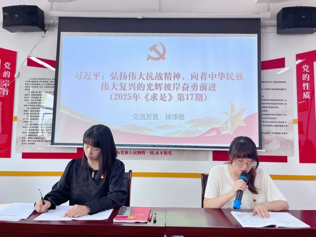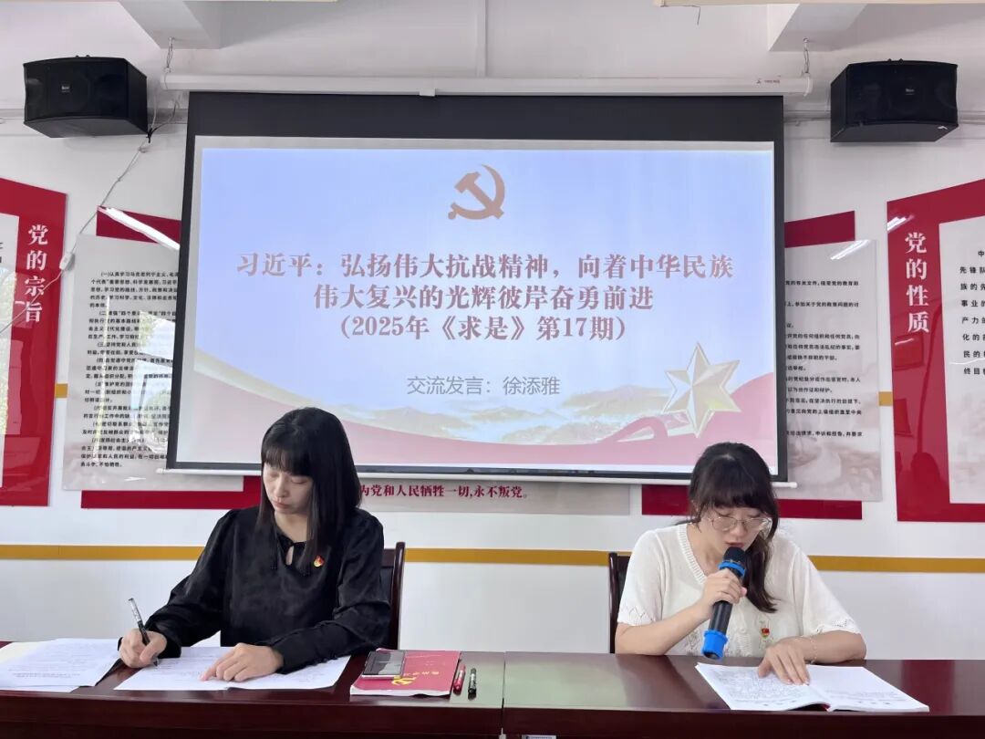 张蕾指出,全体党员干部要深学细悟习近平总书记重要讲话精神,准确把握其核心要义和丰富内涵,从伟大抗战精神中汲取奋进力量,不断战胜发展道路上的各种风险挑战。要把弘扬伟大抗战精神与加强思想政治教育紧密结合起来,用好江西本土红色资源,挖掘校史红色元素,丰富教育形式,提升思想政治教育亲和力。要把弘扬伟大抗战精神与推动学院教育事业高质量发展紧密结合起来,紧扣职业教育高质量发展要求,聚焦专业建设、人才培养和社会服务,勇于攻坚克难、担当作为,以实际行动展现新时代旅商经管人的使命担当。